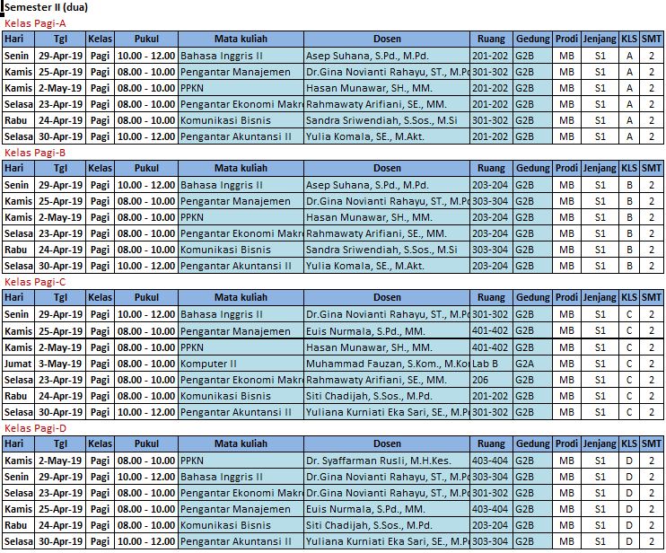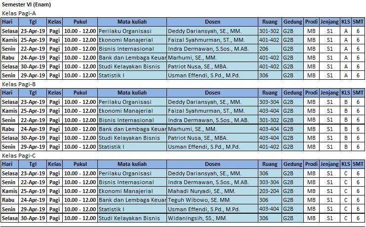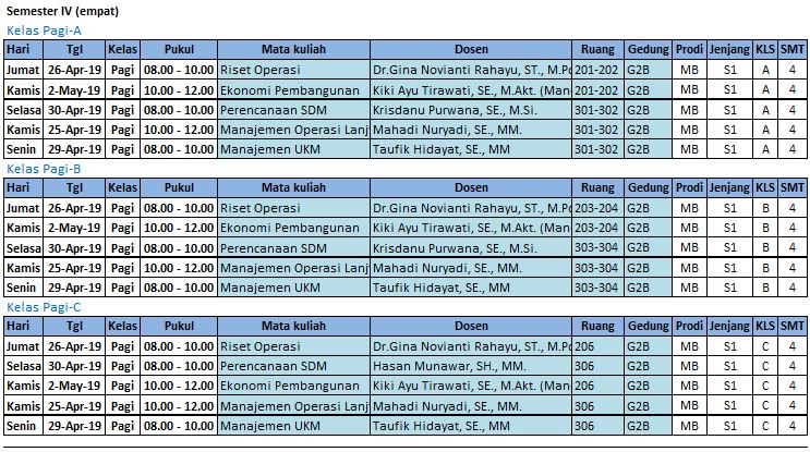 Jadwal UAS Program Studi Manajemen Bisnis (S1)