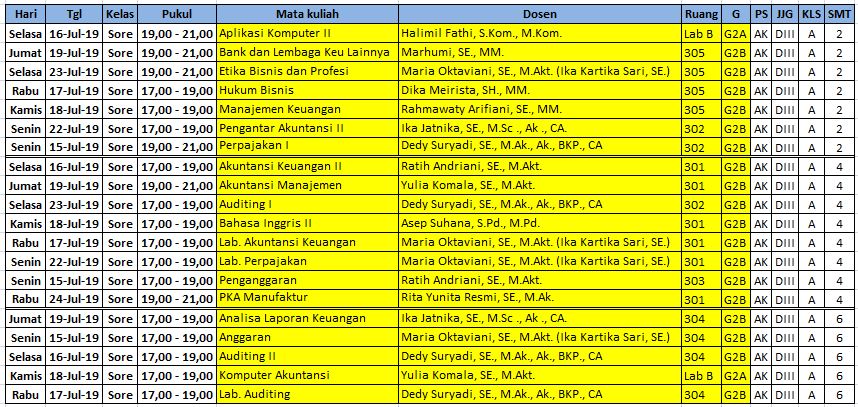 Jadwal UAS Program Studi Akuntansi (D3)